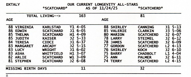 A tip of the genealogical cap goes out to the following Scatchards for immense help with this Tree: